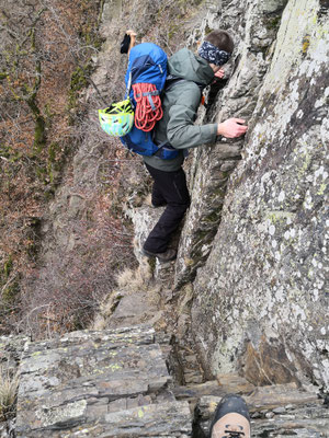 Nach vielen Wintermonaten mit wöchentlichem Training beim Klettertreff der Klettergruppe des Duisburger Alpenvereins in Kletterhallen, zwischendurch einige wenige Male auch draußen im Klettergarten des Alpenvereins im Landschaftspark Nord in Duisburg, gehört seit Mai auch das Üben mit Seilpartner Simon in einem Klettergebiet in Warstein zur Vorbereitung einer geplanten Hochtourenwochen im Sommerurlaub in Sulden/Südtirol. Auch wenn die Wand maximal nur 50 m hoch ist, ist es dennoch ein gutes und realitätsnäheres Training im Vergleich zum winterlichen Klettern in der Kletterhalle mit künstlichen Routen oder den kurzen Routen im Landschaftspark.